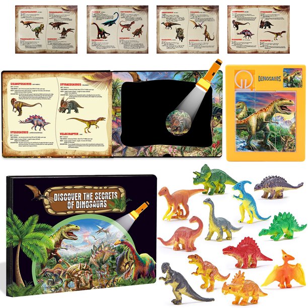 Ixtix Dinosaur Books For Kids Interactive Dinosaur Book With 12 Realistic Dinosaur Figures Flashlight And Dinosaur Puzzle Early Learning Dinosaur Picture Bedtime Story Books For Walmart Com